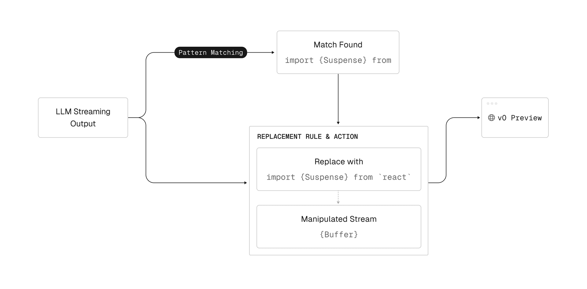 In production, these simple rules handle variations in quoting, formatting, and mixed import blocks. Because this happens during streaming, the user never sees an intermediate incorrect state.
