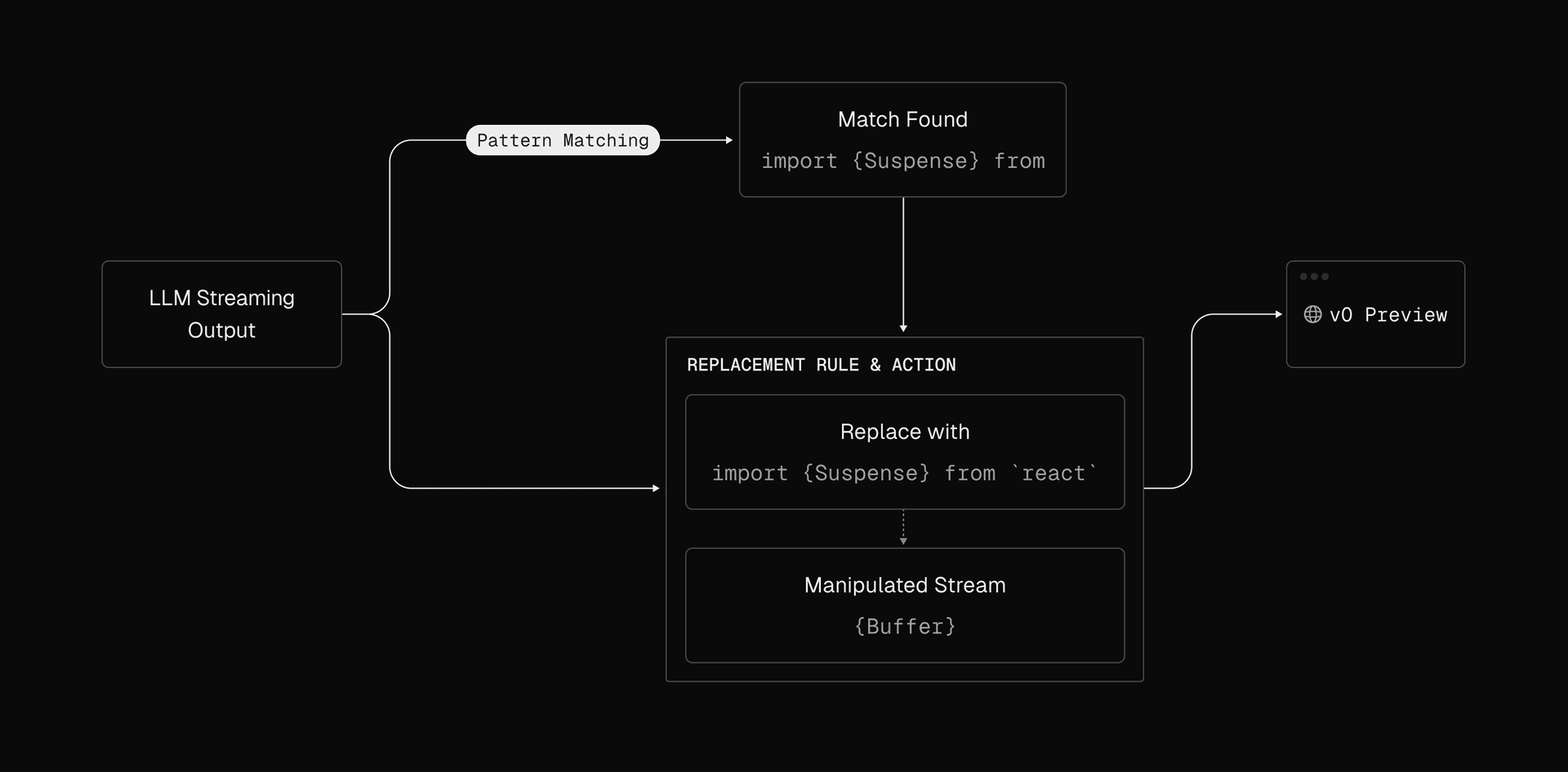 Last year we introduced the v0 Composite Model Family, and described how the v0 models operate inside a multi-step agentic pipeline. Three parts of that pipeline have had the greatest impact on reliability. These are the dynamic system prompt, a streaming manipulation layer that we call “LLM Suspense”, and a set of deterministic and model-driven autofixers that run after (or while!) the model finishes streaming its response.