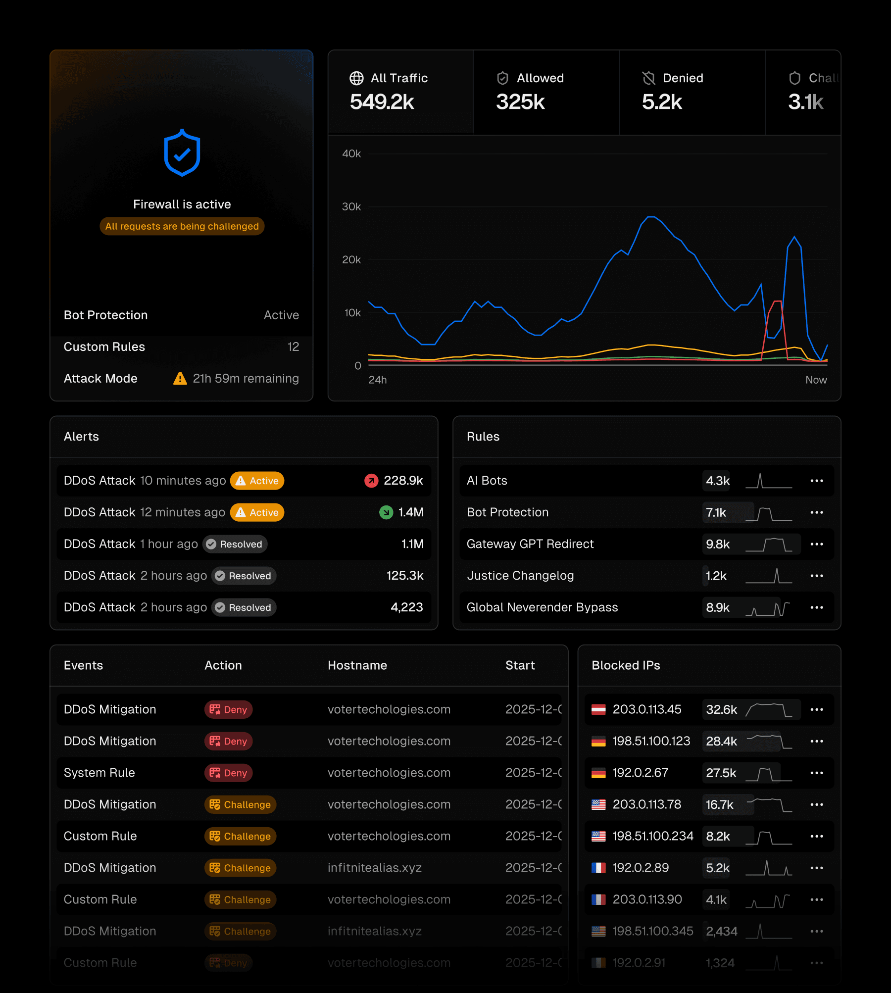 The new Firewall UI is designed for everyone using Vercel. It surfaces clear, actionable information, simplifies navigation, and helps teams resolve issues quickly when it matters most.