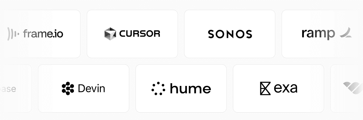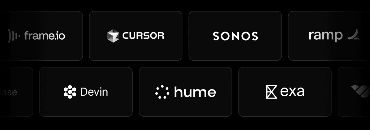 The first showcase wave includes work from Browserbase, Chatbase, Cursor, Decagon, Devin, Exa, Frame.io, Hume, Leonardo, OpenAI, Polymarket, Ramp, Sonos, Suno, and Whop.