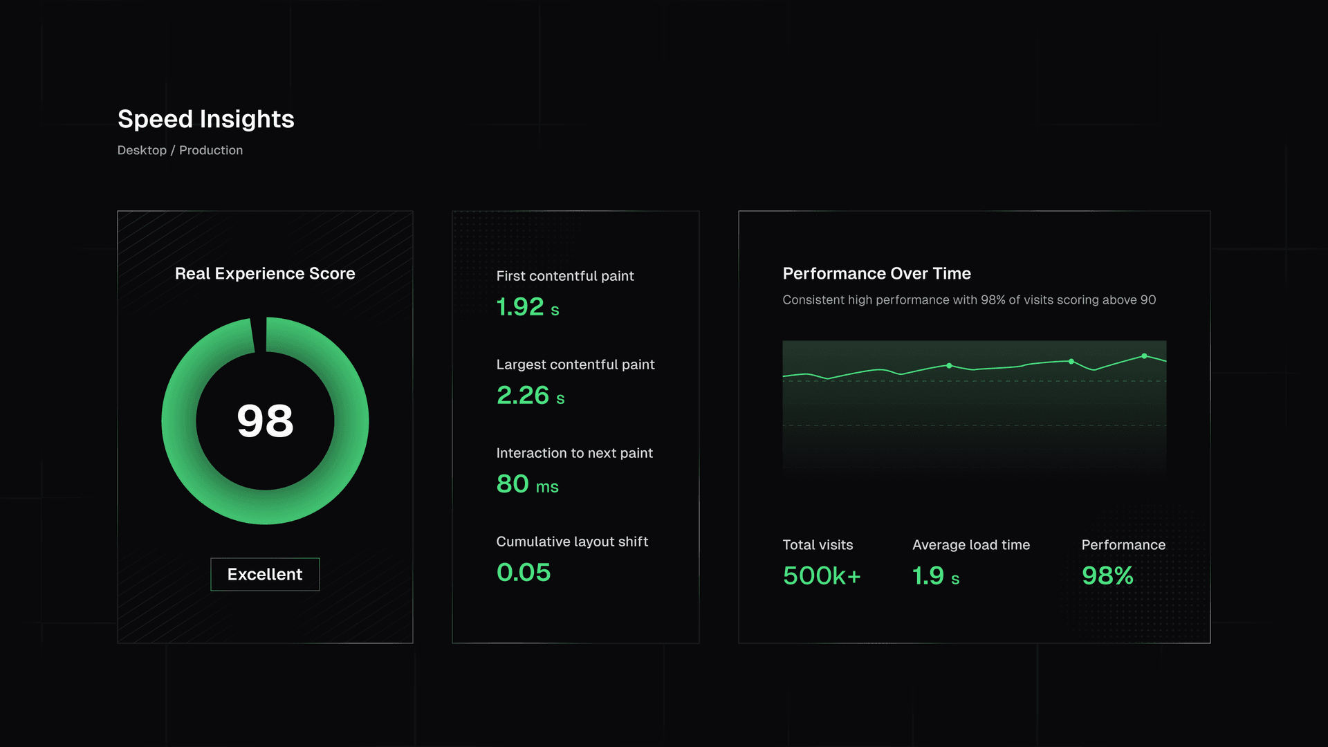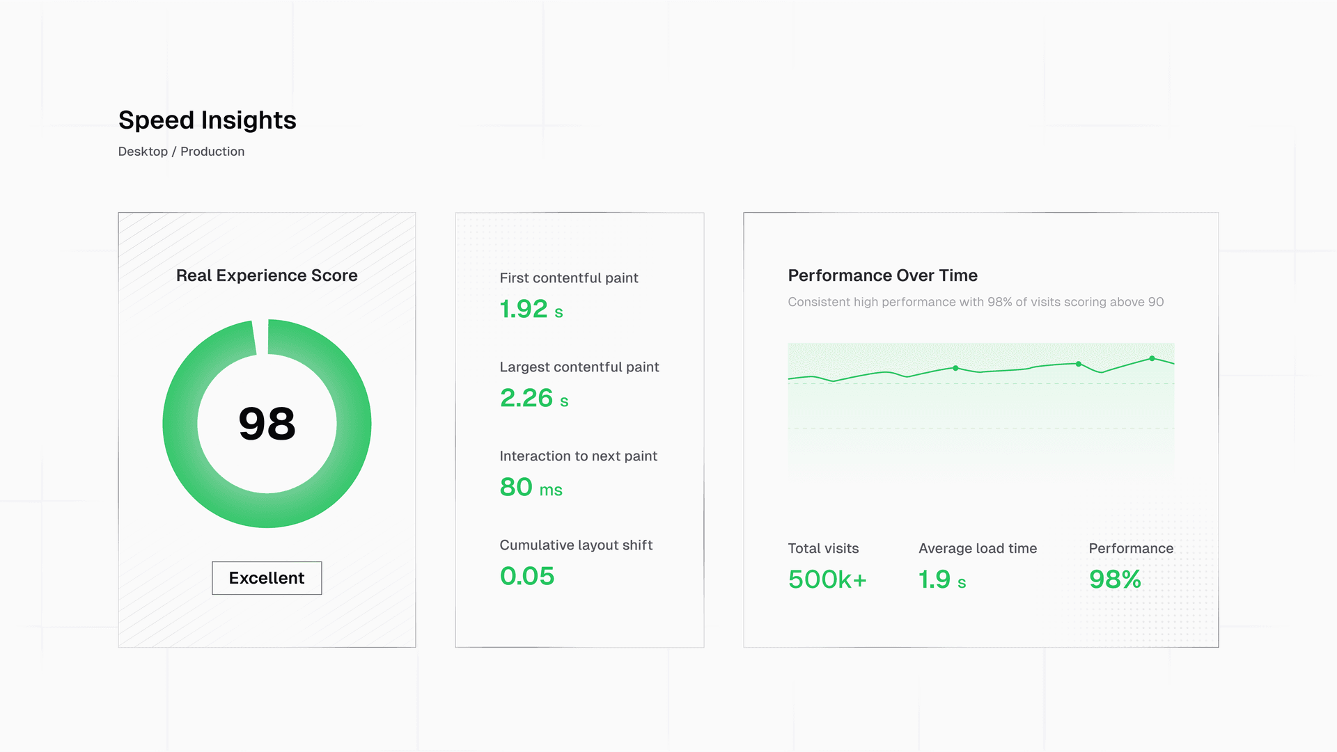 With Vercel Analytics and Speed Insights, the team can now understand how real users interact with the site. Performance insights right in the Vercel Dashboard became a north star.