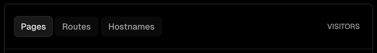- Pages: The page url (without query parameters) that the visitor viewed.