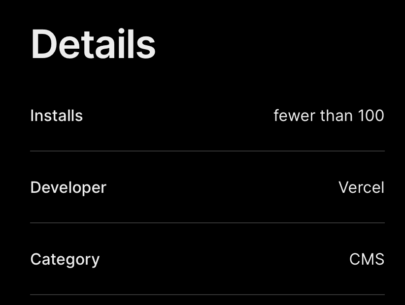 They are displayed in the Details section of the Marketplace integration page that Vercel users view before they install the integration.