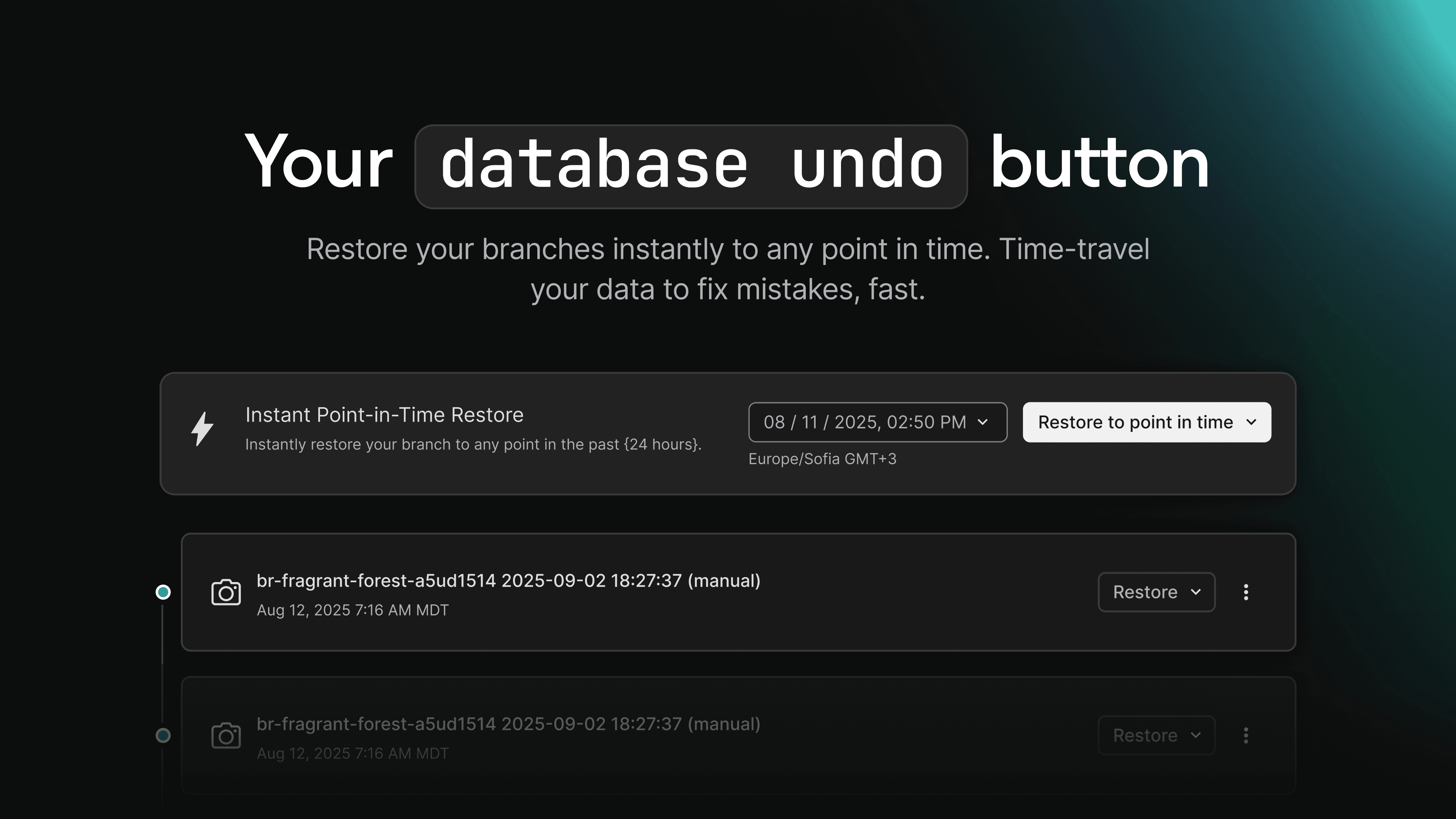 By integrating Neon with Vercel, you can deploy a fully managed Postgres database in seconds with features like database branching, autoscaling, scale-to-zero, read replicas, authorization, a Drizzle Studio-powered table editor, an AI-enabled SQL client, instant point-in-time recovery, time travel queries, a low-latency serverless driver, and more. Neon offers a generous Free Plan and paid plans that grow with you from prototype to enterprise.